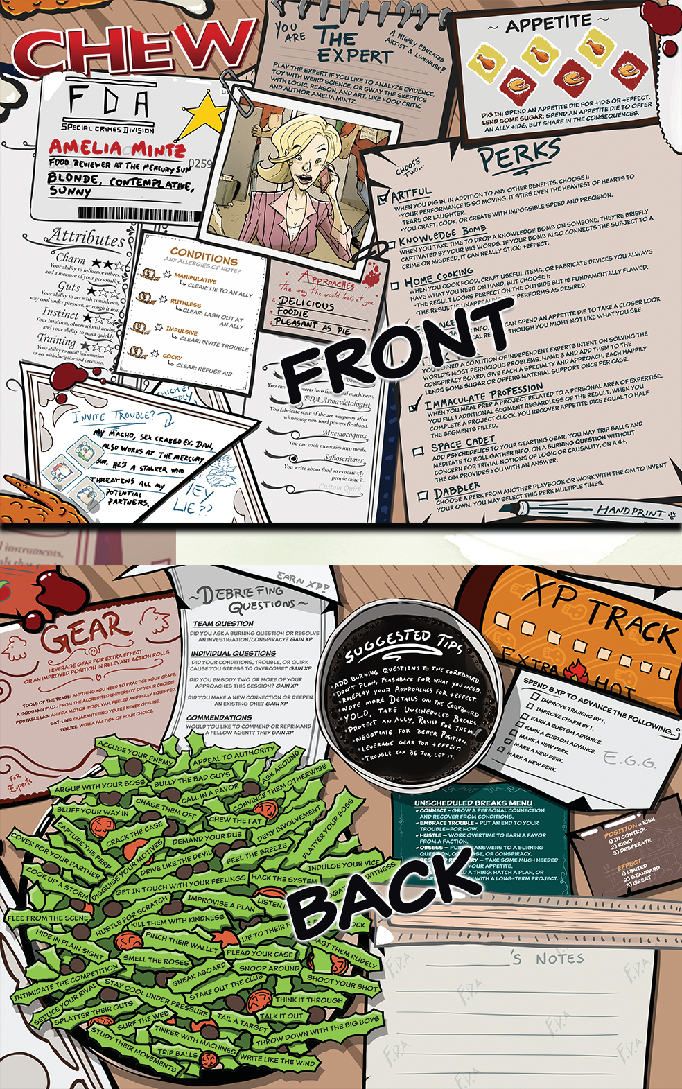 Includes premade characters from the cast of CHEW and handy… ah, handouts.