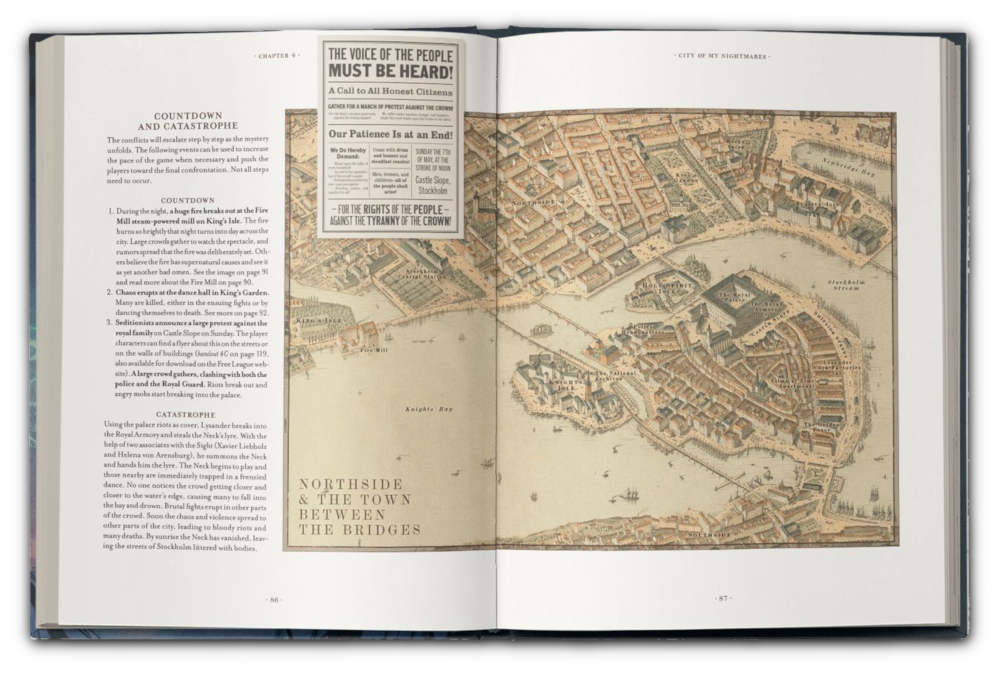 City of My Nightmares is set in 19th century Stockholm but can be adapted to London, Prague or any Gothic metropolis of the era. This beautifully illustrated book includes a separate large map of Stockholm and a huge newspaper handout.