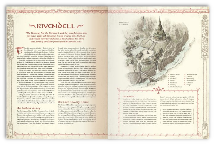 The Rivendell compendium contains information about The Last Homely House, including a map of the valley and a plan of the house itself. Some of Rivendell’s inhabitants are included, including Elrond, who can be used as a new patron. Finally, there are also new rules for how to create High Elf Player-heroes.