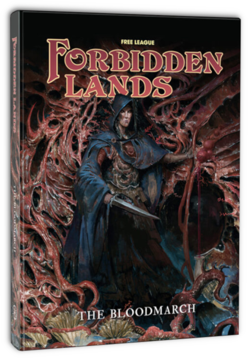 The Bloodmarch is an epic campaign module for the Forbidden Lands retro-fantasy survival roleplaying game, describing the demon-infested lands west of Ravenland. This campaign book contains: