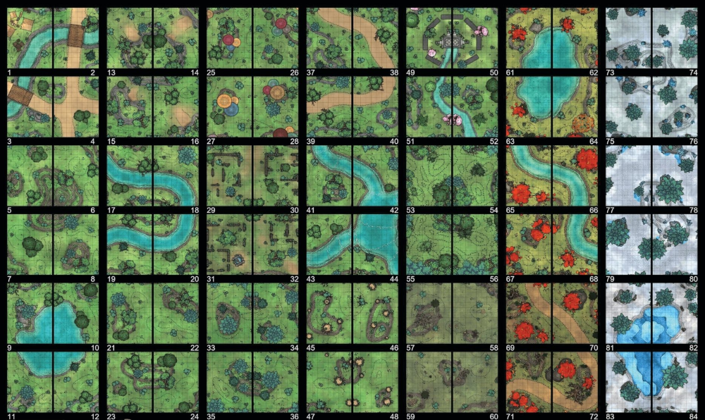 Tome of Maps: Forest includes a variety of biomes, such as an icy lake, a mushroom grove or autumn forest. You can also put two books together, creating a massive A2 map!