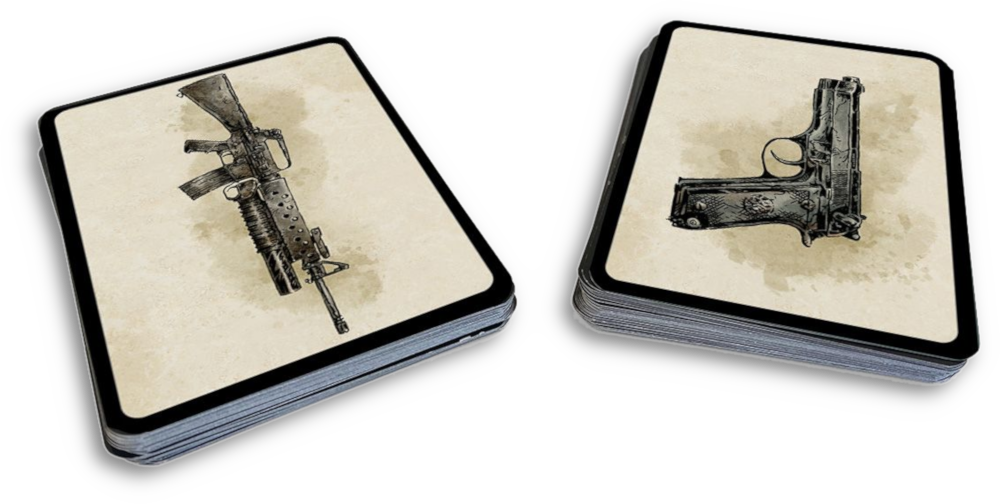 The Twilight 2000 Weapons Card Deck contains 64 high quality illustrated custom cards designed for the fourth edition of the Twilight: 2000 roleplaying game. Each card depicts a weapon found in the game. The cards let players quickly reference weapon stats during play, keeping the information in front of them without flipping through the rulebook.